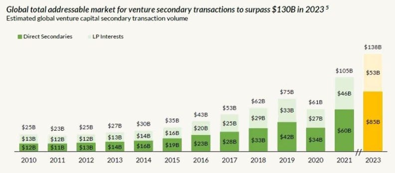 Whether valuations are up or down, and although the market stalled briefly in Q3 2023, the broad trend for secondary transactions is heading only in one direction.